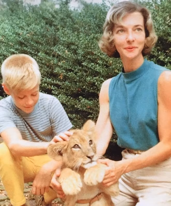 Bố và bà nội (làm bác sĩ thú y) của người đăng ảnh chụp hình bên con sư tử cưng mà họ nuôi trong 2 năm. Khoảnh khắc được ghi lại năm 1959. Ảnh: Imgur.
