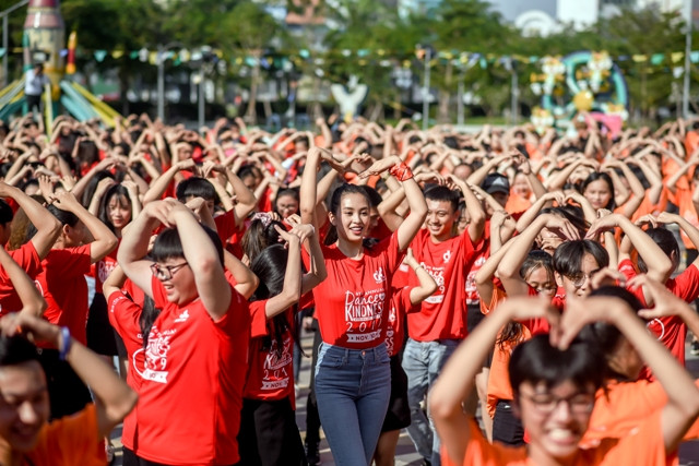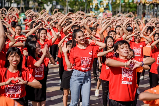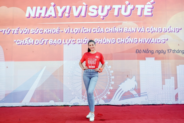 Trong chương trình, Tiểu Vy cùng các bạn học sinh, sinh viên tham gia nhảy flashmob, dân vũ để lan tỏa thông điệp của chương trình năm nay là “Tử tế với sức khỏe – Vì lợi ích của chính bạn và cộng đồng” và “Chấm dứt bạo lực giới – Phòng chống HIV/AIDS”.