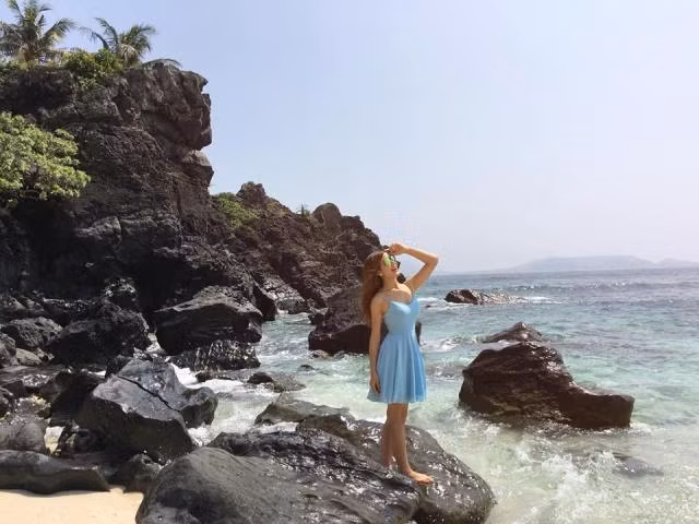 Chuyến du xuân này, cô đã đi thăm Chùa Vàng, Chùa Cái Bầu (Quảng Ninh), sau đó là chuyến đi đến Đảo Lý Sơn (Quảng Ngãi) và Hội An (Quảng Nam).
