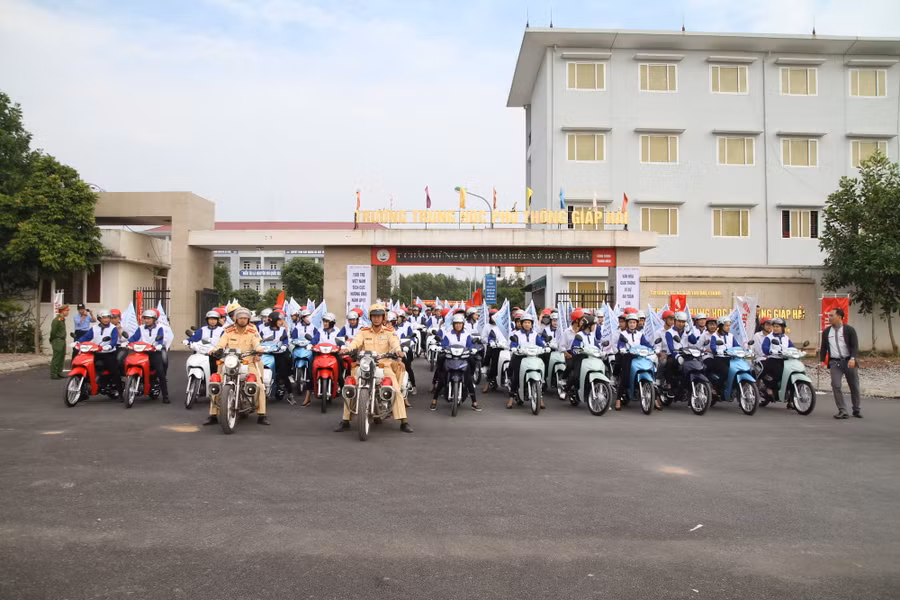 Học sinh trường THPT Giáp Hải hưởng ứng lễ ra quân phát động HSSV nghiêm chỉnh chấp hành pháp luật về ATGT năm học 2019-2020.