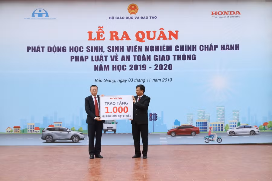 Công ty Honda Việt Nam trao tặng 1000 mũ bảo hiểm cho học sinh, sinh viên tỉnh Bắc Giang.