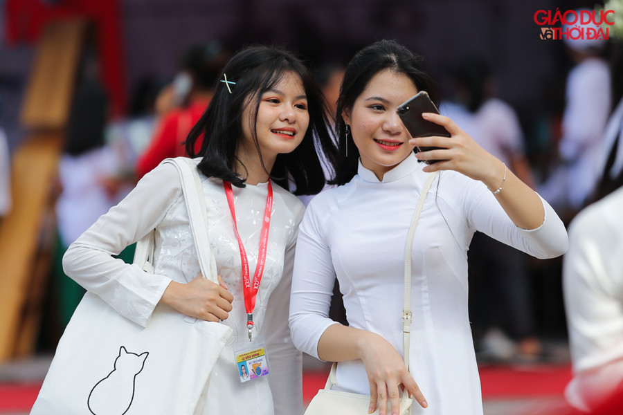 Đây cũng là dịp các bạn nữ được diện trên mình bộ áo dài trắng tinh khôi truyền thống. Nhìn loạt khoảnh khắc các nữ sinh rạng rỡ trong tà áo dài, nhiều người không khỏi "thương nhớ", ao ước một lần quay trở lại thành học sinh để hòa mình vào không khí ngày khai giảng.