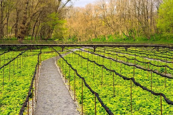 Từ tháng 5-10, nhiệt độ tăng cao, các cánh đồng được bảo vệ khỏi ánh nắng mặt trời bằng những tấm lưới màu đen. Chúng cần sự chăm sóc liên tục và tỉ mỉ trong 12-18 tháng, có khi 2 năm trong môi trường riêng mới có thể thu hoạch. Ảnh: PhotoNN.
