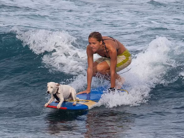 Các cô cậu chủ có thể đăng ký cho cún cưng một khóa học trọn gói, được tập làm quen với ván lướt trước khi học cách lướt sóng thực tế giữa Thái Bình Dương.