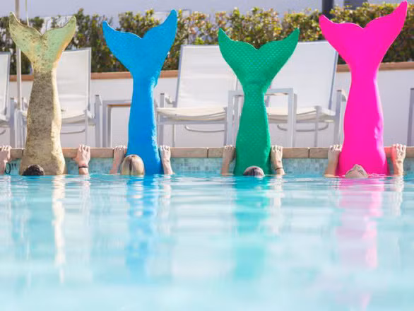 Du khách sẽ được vui đùa trong hồ bơi với những chiếc đuôi rực rỡ và lắng nghe giọng hát của nàng tiên cá trong lớp tập luyện dưới nước dài 45 phút của huấn luyện viên… nàng tiên cá dày dạn kinh nghiệm của khách sạn.