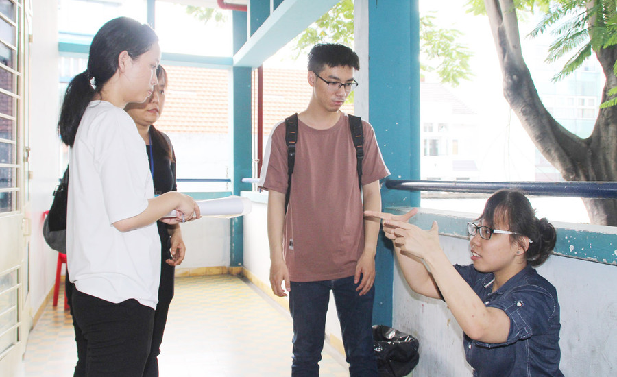 “Năm nay em đăng ký thi vào ngành GD đặc biệt, Trường ĐHSP TPHCM để trở thành cô giáo dạy cho trẻ khiếm thính và câm điếc” -Thủy chia sẻ với giọng đầy quyết tâm - “Ở trung tâm những năm trước có các bạn đậu vào ngành GD đặc biệt của Trường ĐHSP TPHCM, nên đó cũng là động lực để em đăng kí thi xét tuyển vào trường. Bản thân em học đều các môn chứ không giỏi hẳn môn nào. Năm nay em đăng kí thi để xét tuyển môn Văn, Sử, Địa”.