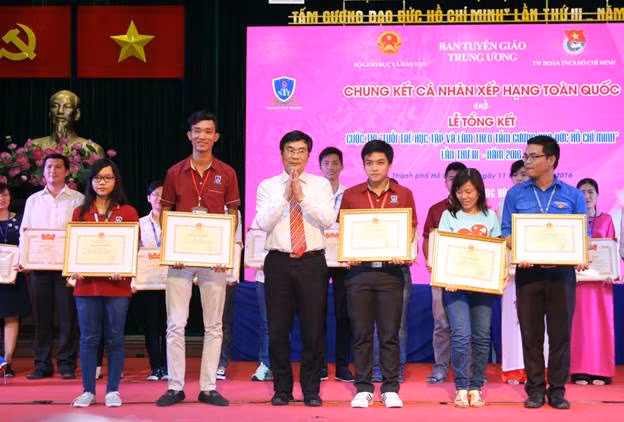 Trong đó, em Huỳnh Thanh Thân – Học sinh lớp 11B1 Trường THPT Trần Bình Trọng (tỉnh Khánh Hòa) - đã xuất sắc vượt qua 29 thí sinh khác để đứng lên bục cao nhất của Vòng chung kết xếp hạng cá nhân toàn quốc cuộc thi “Tuổi trẻ học tập và làm theo tấm gương đạo đức Hồ Chí Minh” lần thứ III – năm 2016.