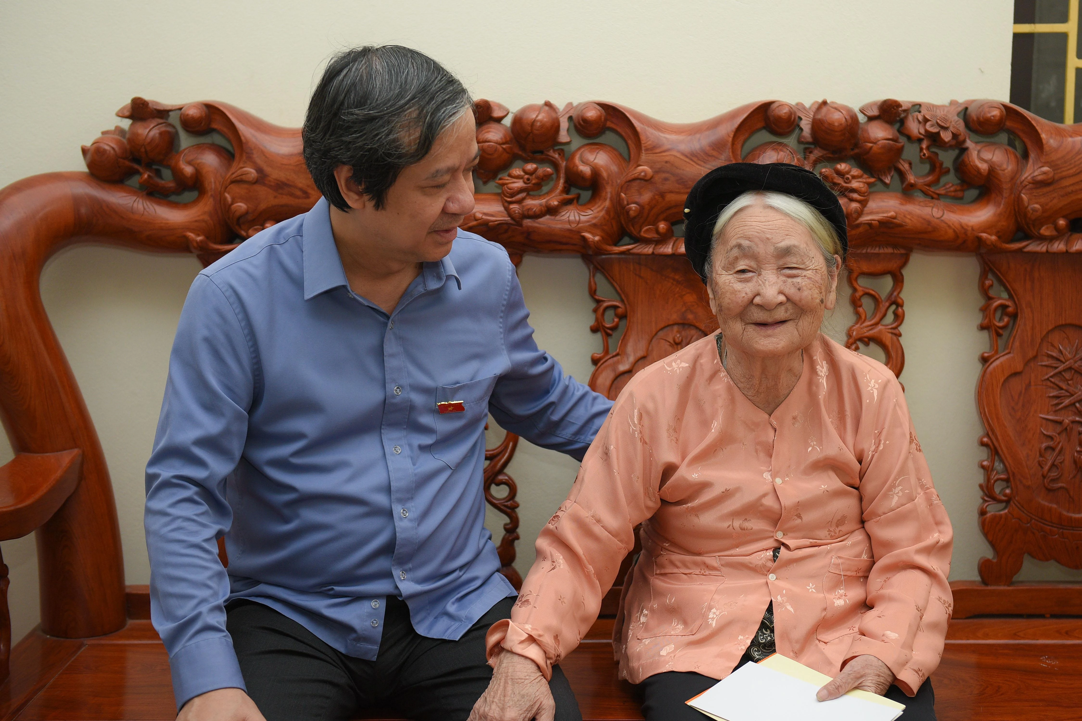 Bộ trưởng Nguyễn Kim Sơn kính chúc Mẹ Việt Nam anh hùng Nguyễn Thị Cứu giữ gìn sức khỏe, luôn là tấm gương về sự hy sinh, sự chịu thương, chịu khó, vun đắp cho gia đình, dựng xây quê hương để con cháu noi theo.