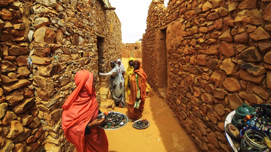 Kho báu văn hóa này là vô giá, vì vậy UNESCO đã công nhận đây là di sản thế giới cần được bảo tồn năm 2000. Được thành lập trong khoảng giữa thế kỷ thứ 11 và 12, thành cổ Chinguetti được bao bọc bởi núi lởm chởm và cao nguyên rộng bất tận, là nơi chung chuyển quan trọng của con đường giao thương qua sa mạc Sahara. Các thương gia chuyên buôn vàng, nô lệ, muối và gia vị... thường dừng lại ở đây nghỉ ngơi.