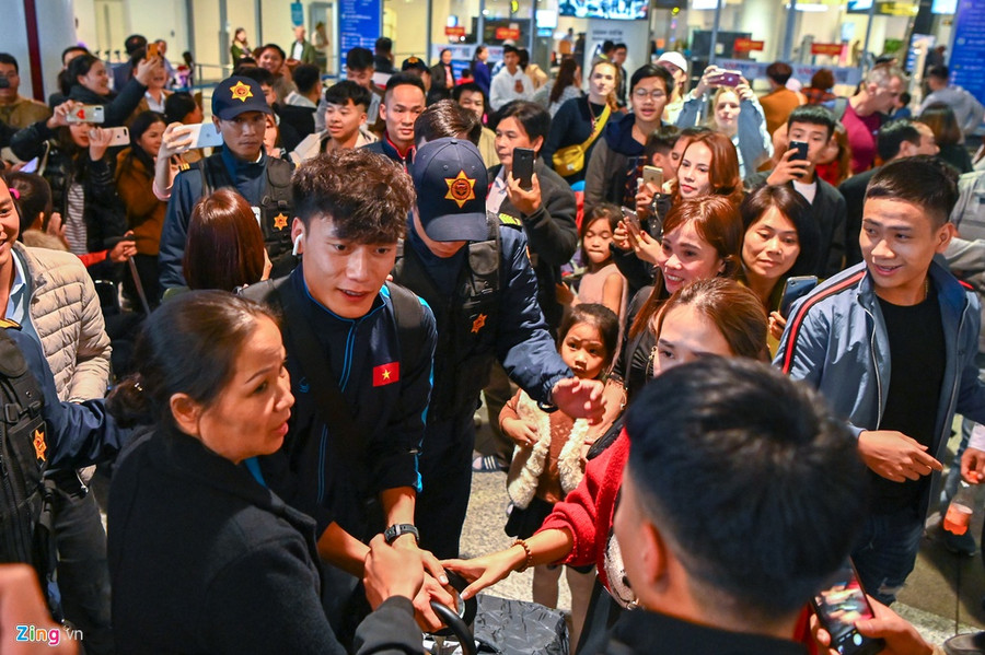 Chuyến bay từ Bangkok về Hà Nội đã bị trễ hơn nửa giờ đồng hồ so với dự kiến, thời tiết giá rét 15 độ C tại thủ đô Hà Nội khác hoàn toàn so với vài giờ trước đó ở Thái Lan khiến nhiều cầu thủ tỏ ra khá mệt mỏi.