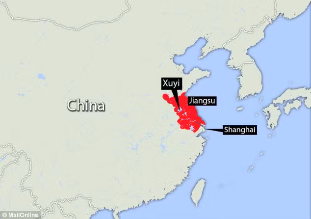Lăng mộ được tìm thấy trên một ngọn núi gần các khu vực đông đúc dân cư ở tỉnh Giang Tô. (được đánh dấu trên bản đồ).