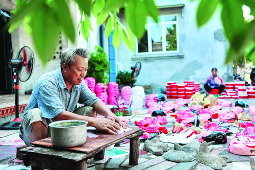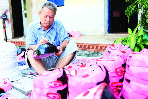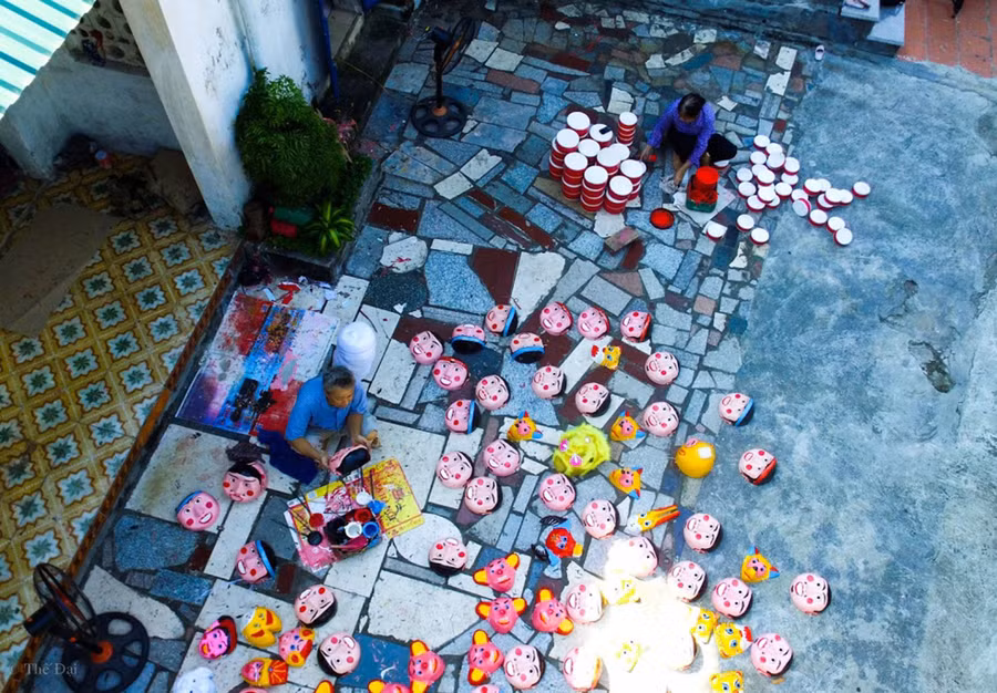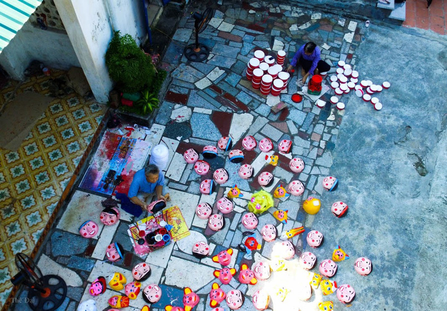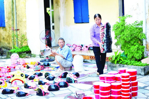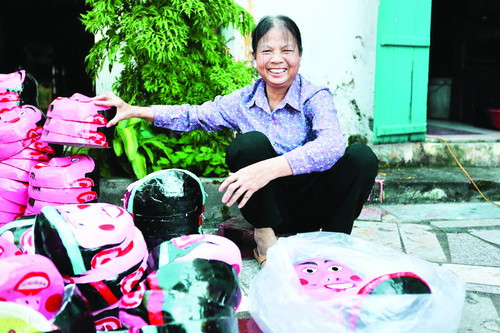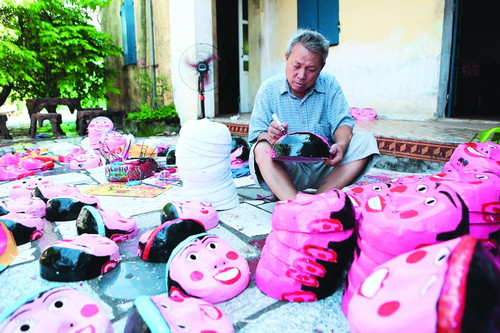 Làm đồ chơi Trung thu là nghề truyền thống đã theo ông Vũ Huy Đông hơn 30 năm nay. Ông Đông cho biết, gia đình ông làm mặt nạ và trống quanh năm để tới tháng 6, 7 âm lịch sẽ chuyển đi bán ở các tỉnh, thành khắp cả nước.