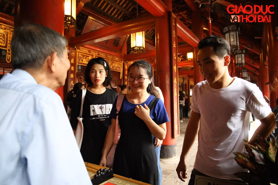 | Sau khi hành lễ trong các điện nhiều thí sinh xin chữ thư pháp ‘Đăng khoa’, cầu may mắn đỗ đạt |