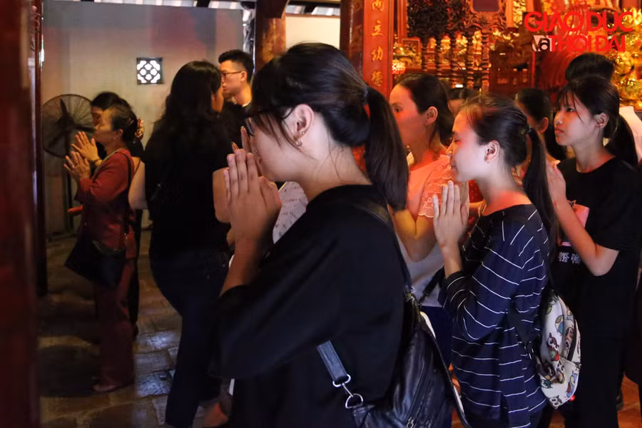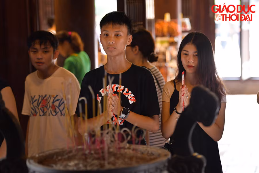Dù đã chuẩn bị cẩn thận ôn luyện về kiến thức, trước ngày thi nhiều học sinh vẫn đến đây thắp hương để "lấy" tinh thần. Phụ huynh mang theo giấy ghi tên thí sinh, khi hành lễ kính cẩn kêu thật to tên con mình.