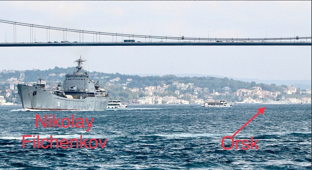 Theo phóng viên Yoruk, 3 tàu trên vừa đi qua eo biển Bosphorous hướng về lãnh hải của Syria. 3 con tàu này được xác định là tàu Pytlivy lớp SBF Krivak, tàu LST Orsk lớp BSF Tapir và tàu LST Nikkolay Filchenkov lớp BSF Tapir.
