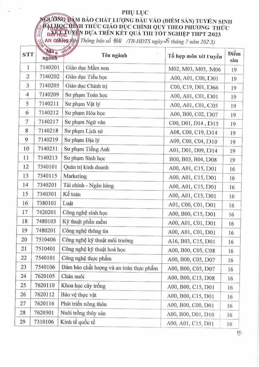 Theo đó, mức điểm sàn chung cho 11 ngành Sư phạm và Giáo dục là 19 điểm; 24 nhóm ngành đào tạo khác là 16 điểm. Cụ thể như sau: