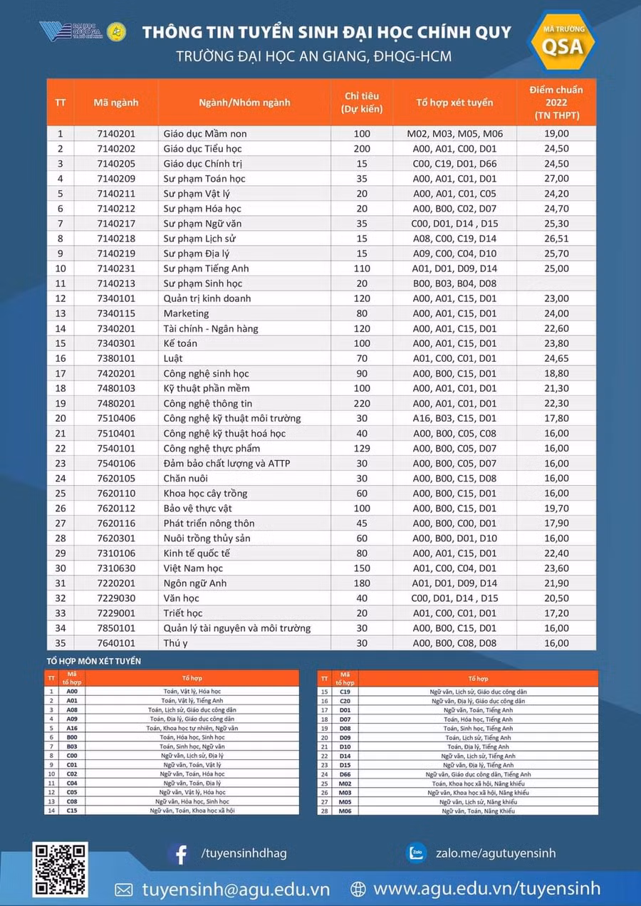 Năm 2023, Trường Đại học An Giang (ĐHQG TPHCM) tuyển sinh 2.539 chỉ tiêu ở 35 ngành/nhóm ngành đào tạo chính quy.