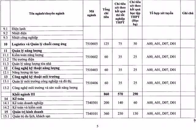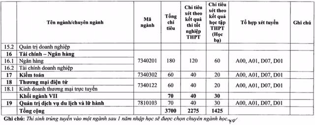 Căn cứ theo từng tổ hợp các môn xét tuyển và theo từng mã ngành tuyển sinh (có tính cả điểm ưu tiên).