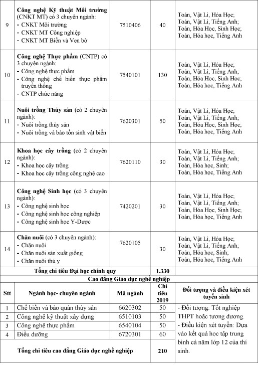 Căn cứ Đề án tuyển sinh năm 2019 của trường Đại học Kiên Giang;