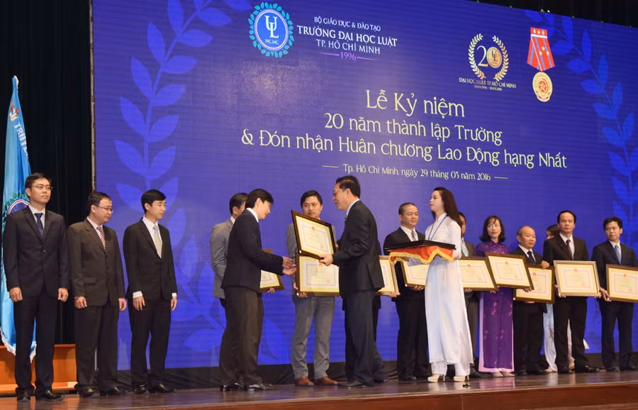 Tại lễ kỉ niệm Trường Đại học Luật TPHCM vinh dự đón nhận Huân chương Lao động hạng Nhất của Chủ tịch nước, bằng khen của Thủ tướng Chính phủ cho 1 tập thể và 4 cá nhân. GS.TS.NGƯT Mai Hồng Quỳ vinh dự nhận Huân chương Lao động hạng Ba.
