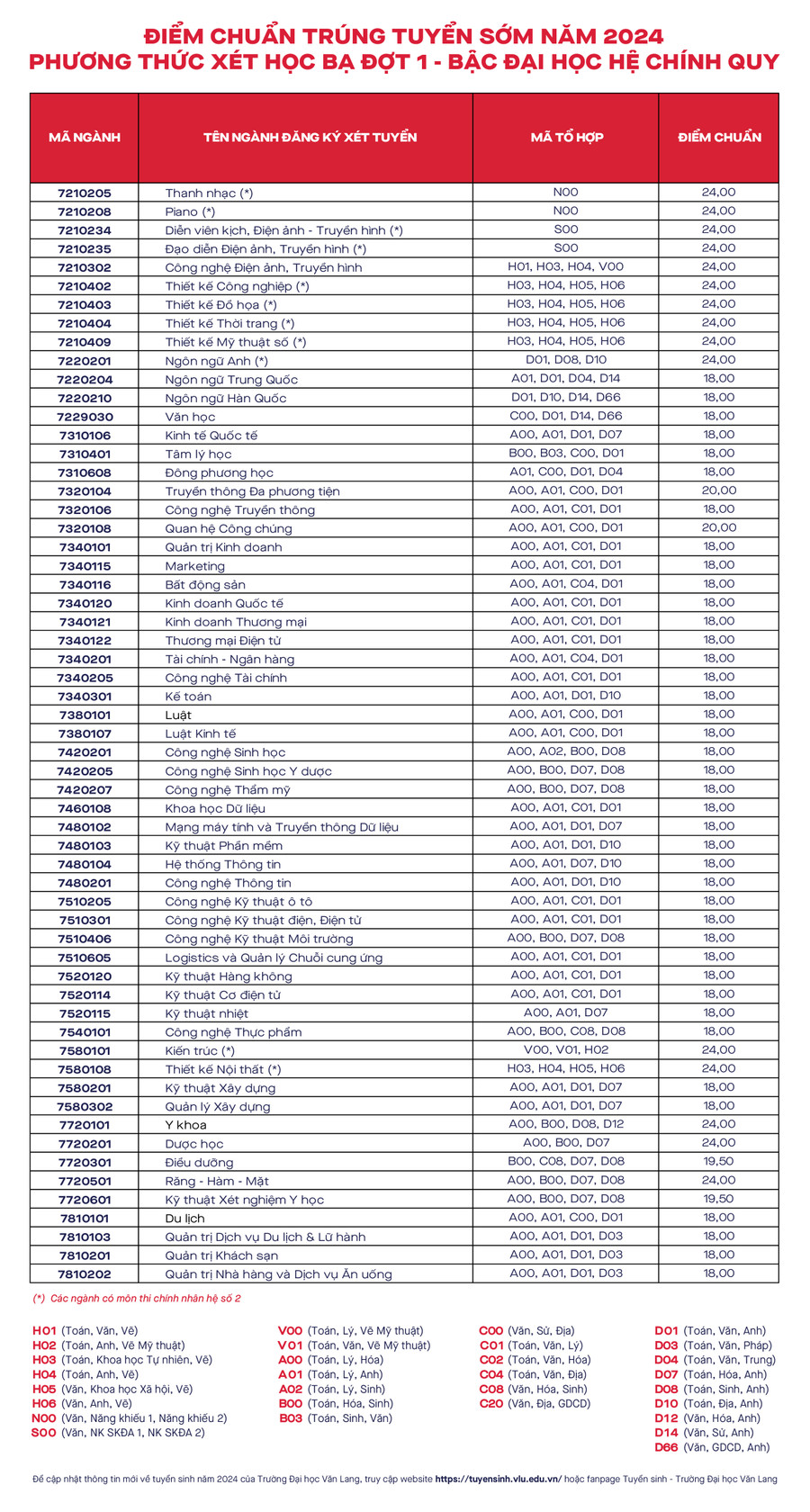 Nhìn chung, điểm chuẩn của các ngành đào tạo năm nay của Trường Đại học Văn Lang tương đương năm 2023.