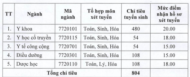 Được biết chỉ tiêu theo ngành/nhóm ngành/khối ngành, theo từng phương thức tuyển sinh và trình độ đào tạo hệ đại học chính quy của Trường ĐH Y Thái Bình là 960 chỉ tiêu.