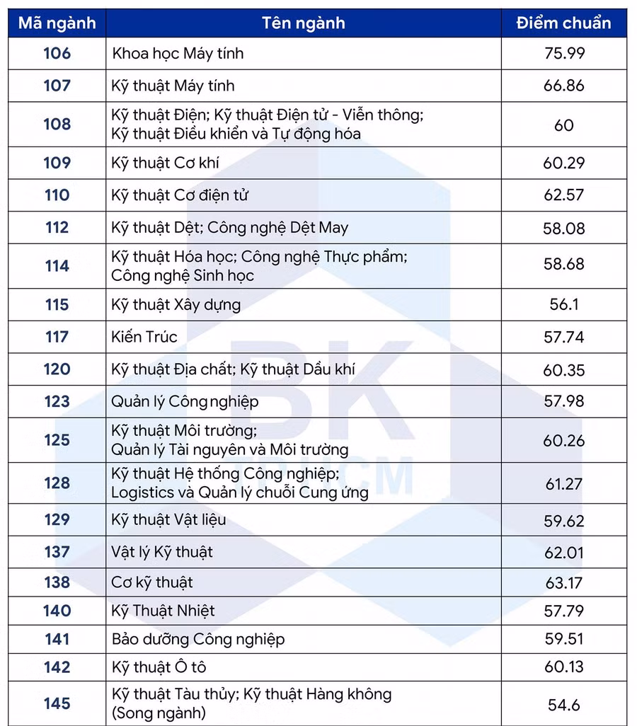 Trước đó, Trường ĐH Bách khoa TP.HCM công bố ngưỡng đảm bảo chất lượng đầu vào (điểm sàn) xét tuyển vào các ngành đào tạo ĐH chính quy gồm 3 cột điểm.