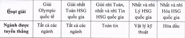 Thí sinh đoạt giải cao còn được tuyển thẳng vào các chương trình kỹ sư tài năng và kỹ sư chất lượng cao, cụ thể: