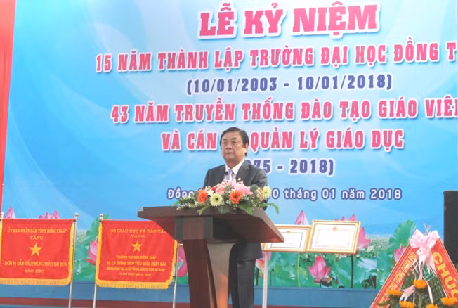 Phát biểu tại buổi lễ, đồng chí Lê Minh Hoan - Bí thư Tỉnh ủy Đồng Tháp đã biểu dương những thành tựu mà Trường ĐH Đồng Tháp đạt được trong thời gian qua.