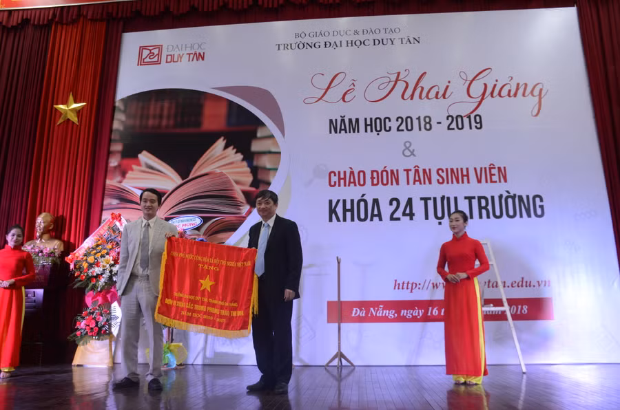 Dịp này, trường ĐH Duy Tân đã vinh dự đón nhận Cờ thi đua của Thủ tướng Chính phủ vì đã có thành tích xuất sắc trong năm học 2016 – 2017.
