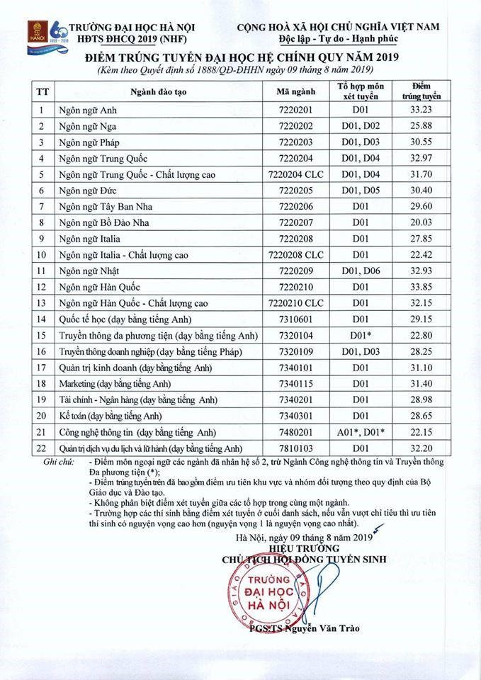 Mức điểm dưới đây, môn ngoại ngữ được nhân hệ số 2, trừ ngành Công nghệ thông tin và Truyền thông đa phương tiện.