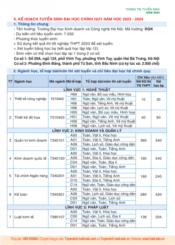 Trường Đại học Kinh doanh và Công nghệ Hà Nội cũng lưu ý các thí sinh đăng ký xét tuyển các môn năng khiếu sẽ do Khoa Kiến trúc và Khoa Mỹ thuật của Trường tổ chức sơ tuyển/thi tuyển hoặc sử dụng kết quả thi năng khiếu của các trường đại học trong cả nước.