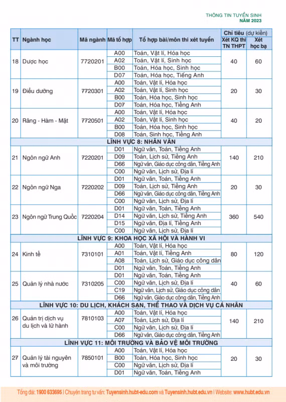 Riêng các ngành khối Sức khoẻ: Thí sinh phải tốt nghiệp THPT và có kết quả học tập đáp ứng ngưỡng đảm bảo chất lượng đối với Khối Sức khỏe do Bộ GD&ĐT quy định. Ngoài ra, hạnh kiểm năm lớp 12 xếp loại Khá trở lên.