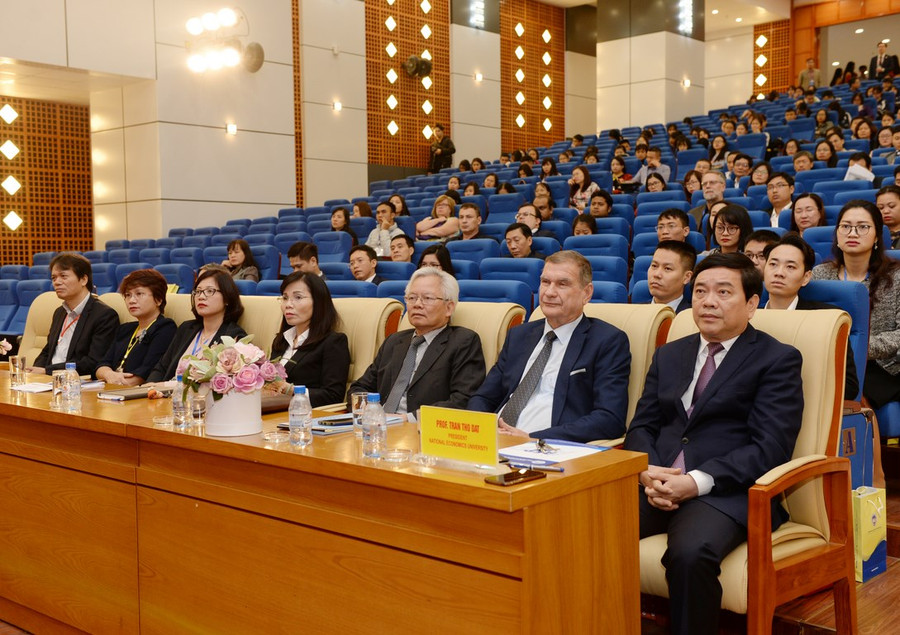 Phát biểu tại Hội thảo, GS.TS Trần Thọ Đạt, hiệu trưởng Trường ĐH KTQD chia sẻ: “Thông qua hội nghị, chúng tôi muốn tham gia với tất cả các bạn trong một cuộc nói chuyện cởi mở để xây dựng ý tưởng về các vấn đề đương đại về kinh tế, quản lý và kinh doanh và cách khắc phục những thách thức hiện nay trong bối cảnh toàn cầu hóa. Hội thảo này cũng là cơ hội lớn cho sự hợp tác giữa Đại học Kinh tế Quốc dân Việt Nam và các trường đại học khác trên thế giới”.