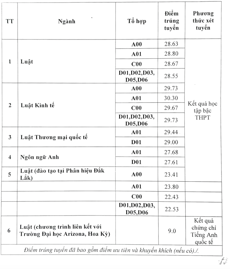 Kết quả điểm trúng tuyển của các ngành, các tổ hợp xét tuyển đã được xác định như sau: