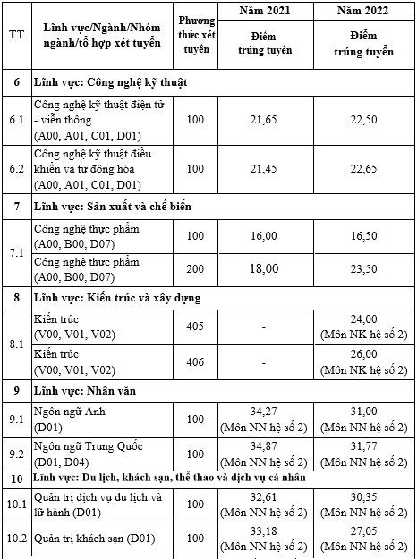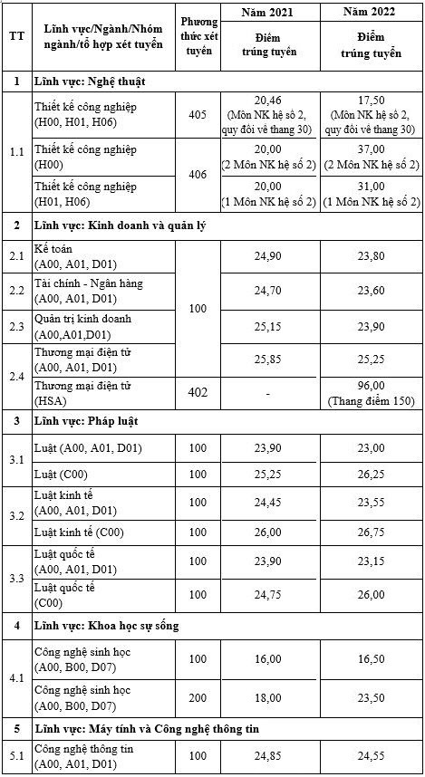 Điểm chuẩn trúng tuyển vào Trường ĐH Mở Hà Nội trong 2 năm 2021, 2022: