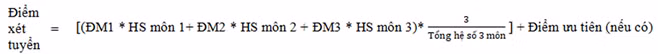 (1) Điểm chuẩn được quy về hệ điểm 30. Điểm xét tuyển được xác định như sau (làm tròn đến 02 chữ số thập phân);
