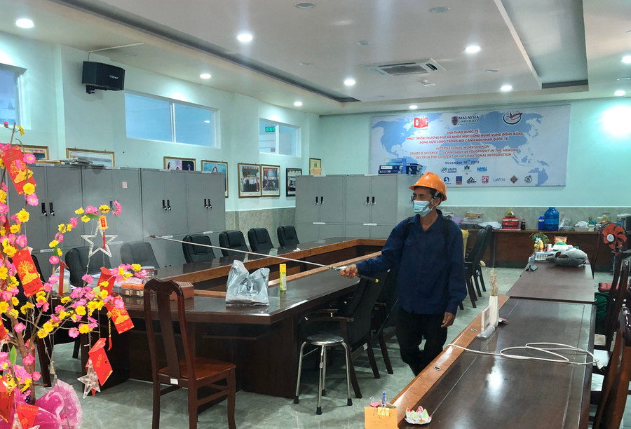 Ngày 5/2, Trường đã tiến hành phun thuốc khử trùng phòng virus Corona tại Khu Ký túc xá sinh viên, khu làm việc của cán bộ, giảng viên và phòng học của sinh viên.