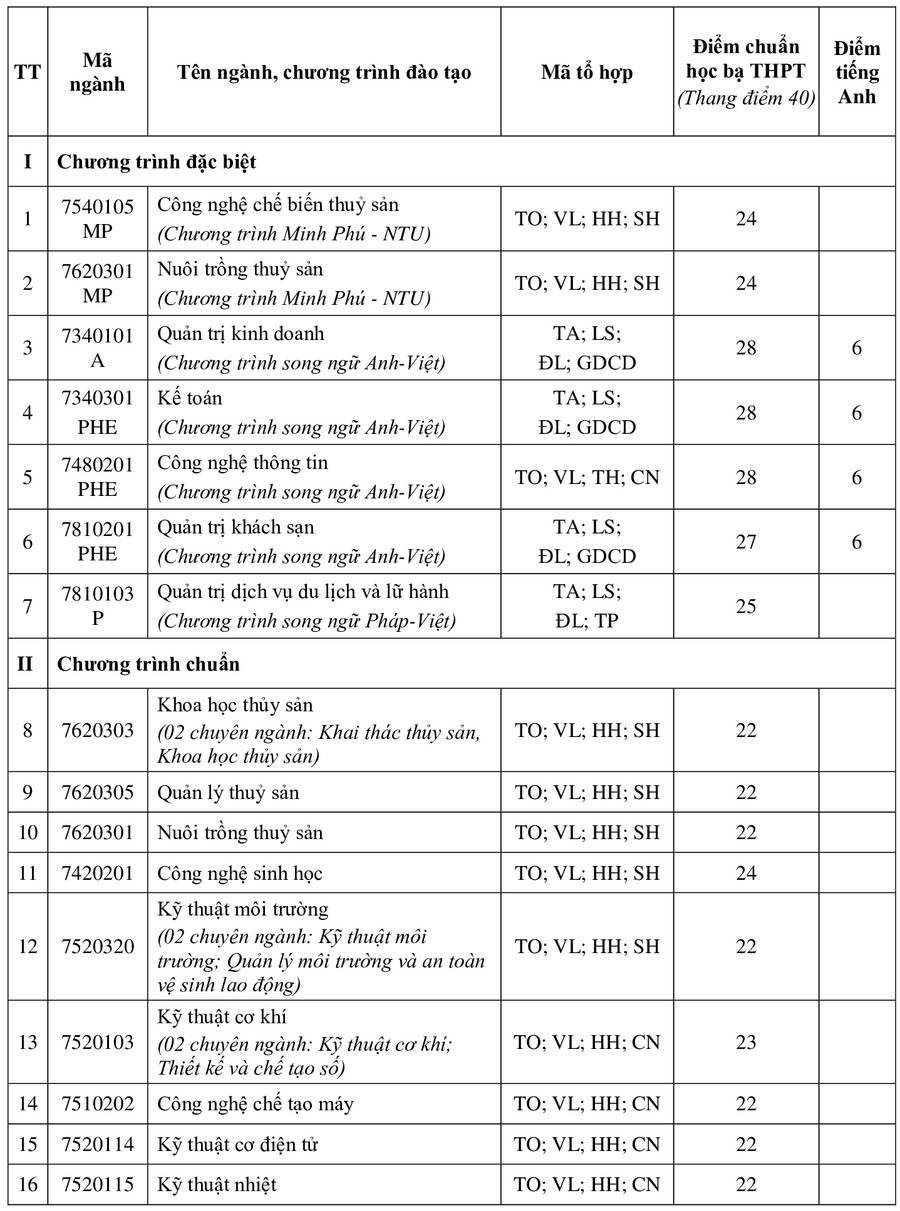 Chiều 7/7, Hội đồng tuyển sinh Trường ĐH Nha Trang thông báo điểm chuẩn bằng kết quả học tập THPT (điểm chuẩn học bạ THPT) năm 2023. Kết quả như sau: