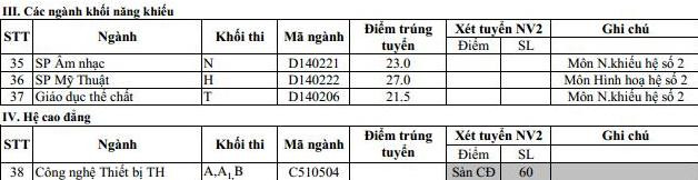 Các ngành học khác, chỉ tiêu và mức điểm xét tuyển cụ thể như sau: