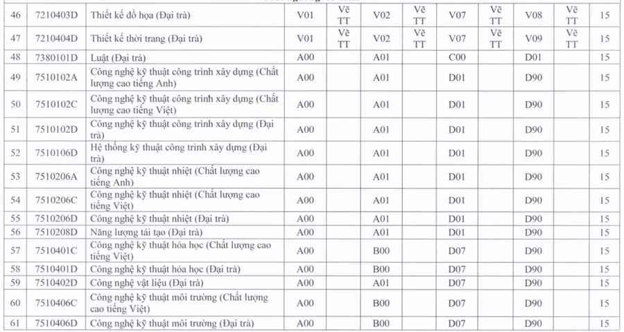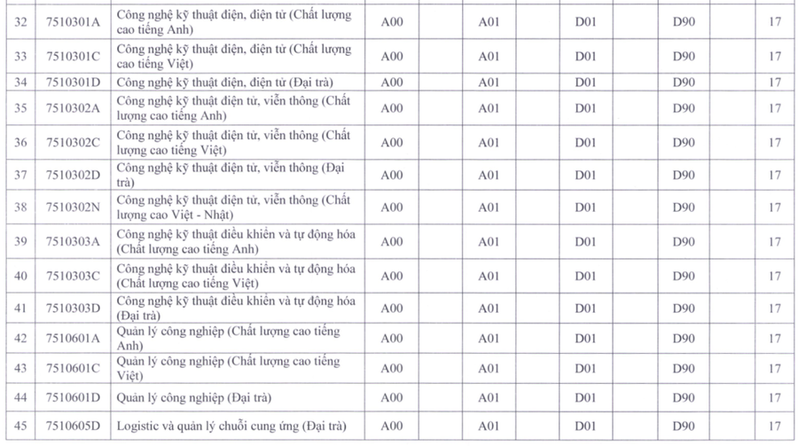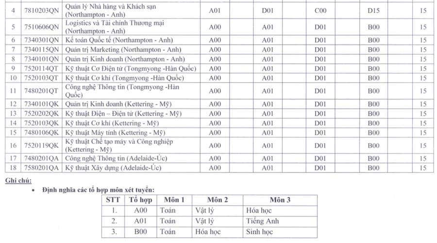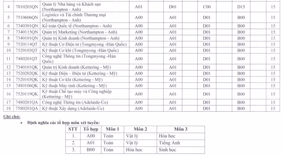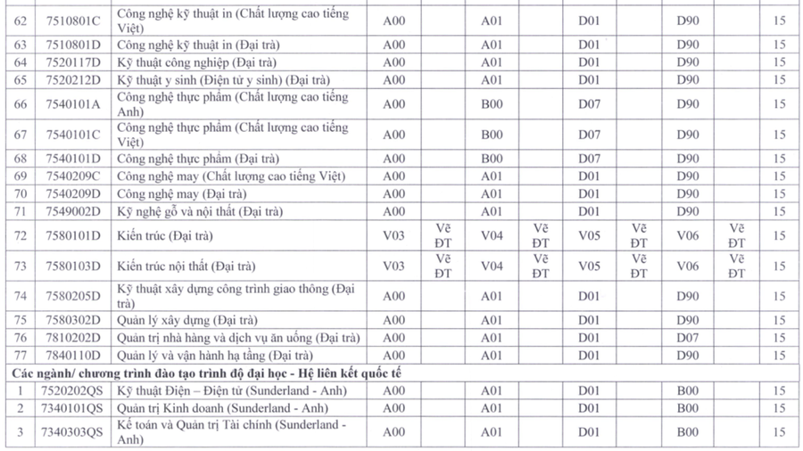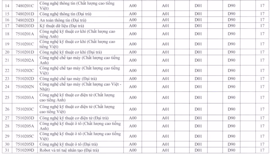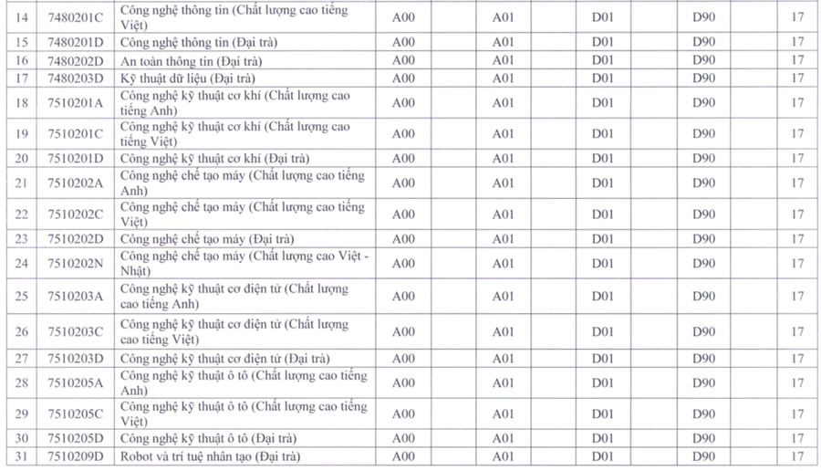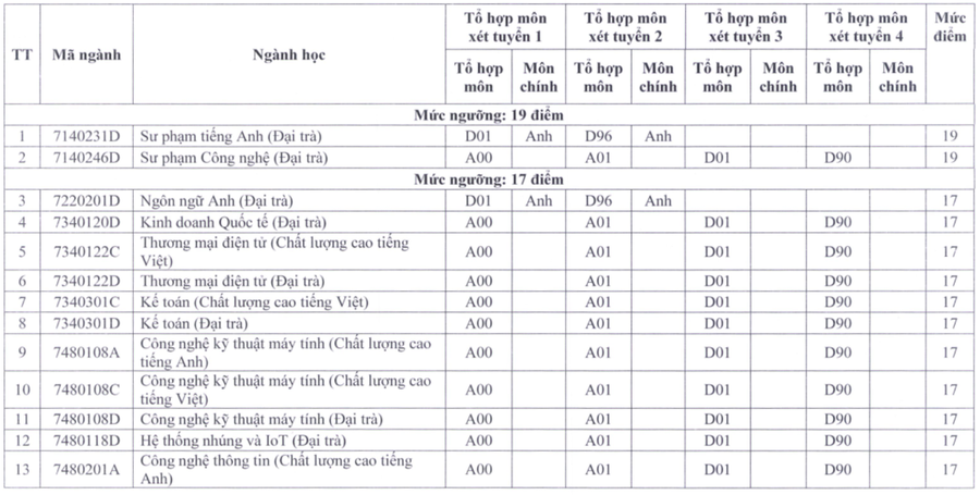 Mức điểm sàn cho từng ngành, chương trình đào tạo như sau: