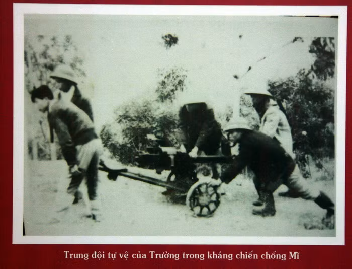 Phiến đá làm bia tưởng niệm mang dòng chữ: “ghi ơn cán bộ, giáo viên đã cống hiến, hy sinh cho sự nghiệp đấu tranh giải phóng đất nước, bảo vệ tổ quốc” được nhà trường đem về từ mảnh đất Gio Linh – Quảng Trị, mặt trận khốc liệt, đầy máu lửa trong chiến tranh chống Mỹ.