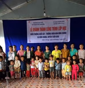 Tại lễ bàn giao, với sự chứng kiến của ông Mùa Va Hồ - Phó Chủ tịch UBND huyện Tuần Giáo cùng đông đảo đại diện cấp Ủy đảng, chính quyền huyện Tuần Giáo, Phòng GD&ĐT, xã Mùn Chung và giáo viên, phụ huynh học sinh nhà trường; GS.TS Phạm Hồng Quang – Bí thư Đảng ủy, Hiệu trưởng Trường ĐH Sư phạm Thái Nguyên đã trao tặng tấm biển sẽ được gắn lên công trình vừa hoàn thành cho cô Trần Thị Kim Khuyên – Bí thư Chi bộ, Hiệu trưởng Trường Mầm non Mùn Chung.