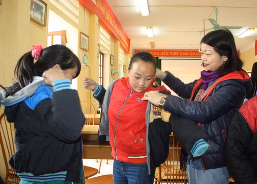 Qua Sở GD&ĐT Hà Giang, đoàn cũng đã gửi tặng nhiều đôi dép tổ ong (vật dụng hết sức cần thiết trong đời sống của học sinh bán trú) cho một trường Tiểu học của huyện Vị Xuyên.