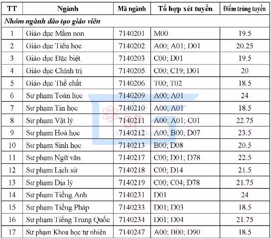 Với nhóm ngành sư phạm, điểm chuẩn trúng tuyển từ 18,5 điểm cho đến 24 điểm.