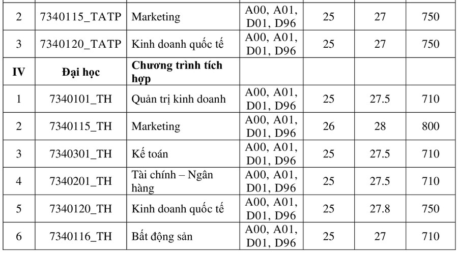 - Tiêu chí xét tuyển phụ: trường hợp thí sinh bằng điểm trúng tuyển ở cuối danh sách thì trường áp dụng các tiêu chí phụ theo thứ tự điểm môn Toán, điểm/chứng chỉ tiếng Anh, kết quả bài thi SAT (nếu có) có điểm cao hơn cho đến khi đủ chỉ tiêu. Nếu vẫn còn vượt chỉ tiêu, trường ưu tiên thí sinh có thứ tự nguyện vọng trúng tuyển cao hơn.