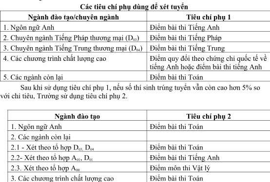 Ngoài quy định trên, thí sinh đăng ký xét tuyển vào ngành Ngôn ngữ Anh và các chương trình đào tạo chất lượng cao phải đạt điểm thi THPT năm 2018 môn tiếng Anh từ 6,0 điểm trở lên; ưu tiên xét tuyển những thí sinh có chứng chỉ chỉ tiếng Anh quốc tế đăng ký học các chương trình chất lượng cao (IELTS từ 5.0 trở lên, TOEFL IBT từ 50, TOEFL IPT từ 500 điểm trở lên).