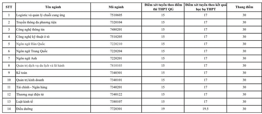 Theo đó, nhà trường thực hiện việc điều chỉnh điểm chuẩn để phù hợp với nhu cầu và tiêu chuẩn đào tạo của từng ngành.