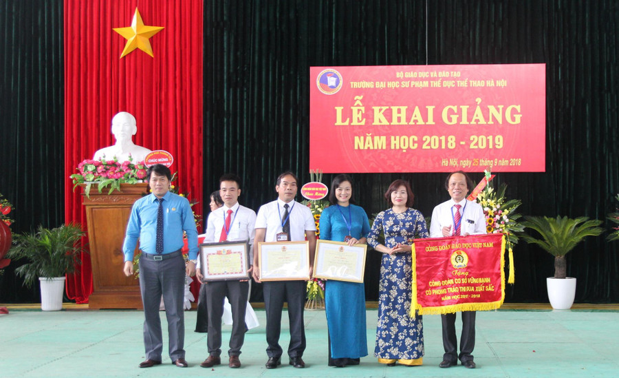 Tại buổi lễ, Nhà trường đã công bố các quyết định của Bộ trưởng Bộ Giáo dục và Đào tạo, của Bộ trưởng Bộ Văn hóa- Thể thao và Du lịch, của Công đoàn giáo dục Việt Nam tặng bằng khen, cờ thi đua cho các tập thể, cá nhân Nhà trường có thành tích xuất sắc trong năm học 2017-2018; đồng thời trao Giấy khen của Hiệu trưởng vinh danh 7 tân tiến sĩ và 2 sinh viên có thành tích xuất sắc trong học tập.