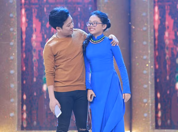 Trường Giang tranh thủ phỏng vấn Phương Mỹ Chi khi cô bé lên sân khấu ủng hộ đàn anh Nam Cường.